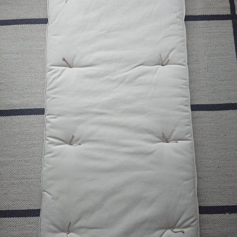 Kuin uusi/erinomainen kunto, vain kokeiltu (lapsi nukkuikin vieressä alusta asti). Säilytetty pinnasängyssä, mitä ei käytetty noin 2 kk minkä jälkeen tuuletettu ja sen jälkeen säilytetty alkuperäispakkauksessa (tästä johtuen kuvassa ”taite”patjassa)