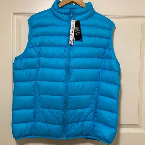 Vaaleansininen KappAhl naisten untuvaliivi.