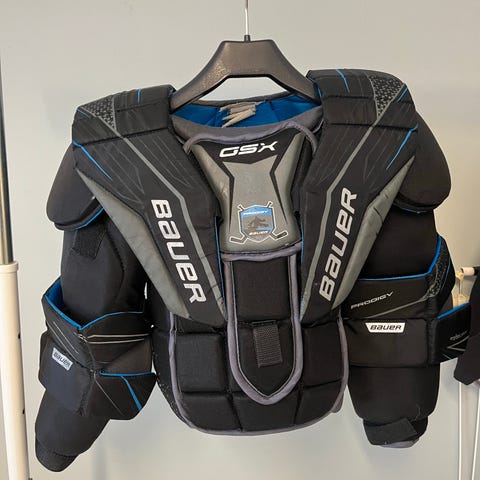 Jääkiekon maalivahdin rintapanssa sisältää olkapää- ja rintasuojat. Varustuksessa on Full Back -selkäsuojaus. Koko Jr. L