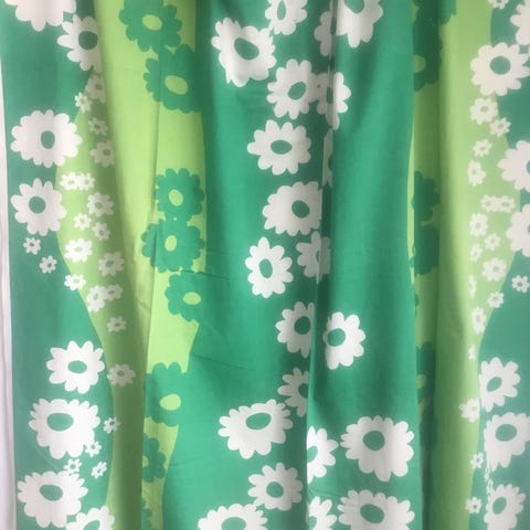 MARJATTA METSOVAARAN lähes uudenveroiset vintageverhot, 100 % puuvillaa by TAMPELLA. 2 KPL. Kankaan nimi on Miranda. Olleet kaapissa useita vuosia, ei tahroja, ei haalistumia, ehjät. Pituus 240 cm +leveä taite alhaalla ja leveys n. 130 cm. Voin lähettää, ostajalle kulut