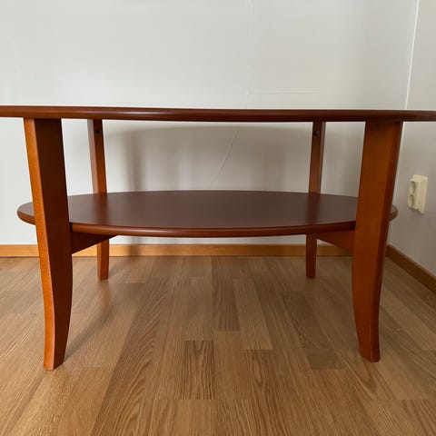 Itsetehty puinen sohvapöytä. Edessä yksi vetolaatikko. Pöydän pinta on patinoitu. Kunto käytetty, mutta yleisilme ehjä ja siisti.