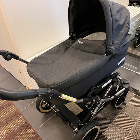Toimivat mutta kuluneet yhdistelmävaunut (runko, vaunukoppa ja ratasistuin). Vanhaa Emmaljungaa. Näillä pääsee silloinkin, kun lunta on satanut paljon. Nouto Konalasta. Mmm.
