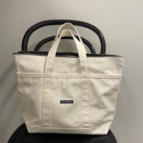 Käyttämätön Marimekko Matkuri, väri tummanruskea. Koko noin 44x35cm, eli ei ole suurin eikä mini, vaan siltä väliltä. Olen irrottanut laput pois, mutta tämä on jäänyt käyttämättä ja on siis virheetön.