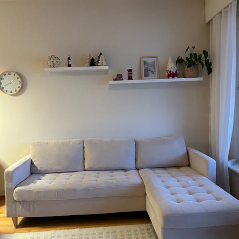 Sohva 243cm leveä, n. 96cm syvä ja 75cm korkea.