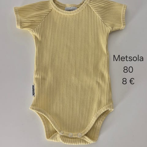Metsola Ruskea lasten body, koko 80. Valmistettu puuvillasta. Unisex-malli, sopii sekä tytöille että pojille. Yhden lapsen käyttämä. Erittäin hyvässä kunnossa.