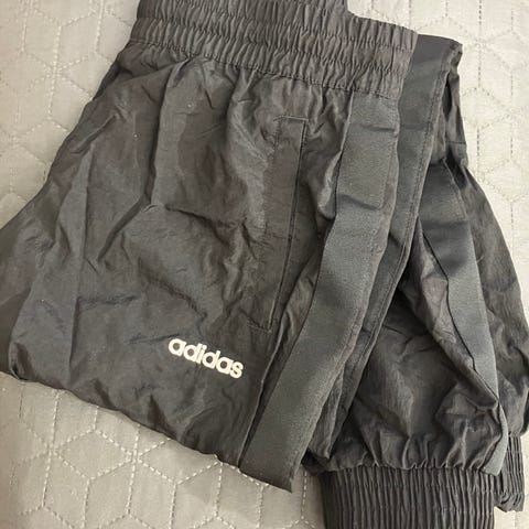 Hyvässä kunnossa Adidaksen tuulihousut. 160cm naishenkilöllä ollut käytössä, koko suunnilleen s.