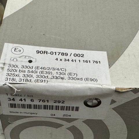 Uudet paketissa olevat Stark merkkiset käsijarrukengät BMW-merkkiseen autoon. Käyvät tietojeni mukaan ainakin: E39,E46,E60,E61,E64,E63,E65,E66.E67,E83,e53,E70,E71,E72,E85,E86,F01,F02,F03,F04,F07,F15,F16,F85,F86 myös jotkin VW Multivan/Transporter/Tuoreg. Mahdolliset postikulut ostajalle.