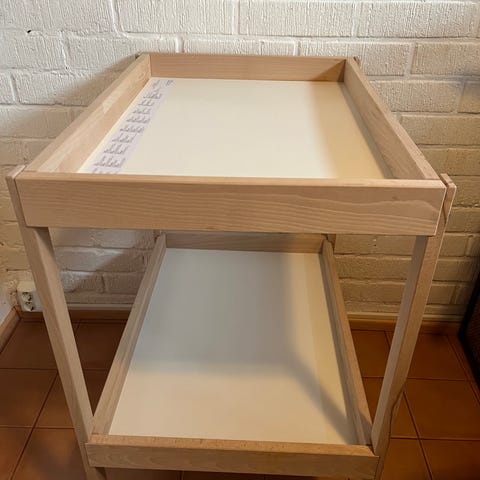 Myynnissä Ikean hoitopöytä Gulliver. Mukaan tason oma hoitopehmuste.