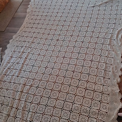 Virkattu pitsi 1,16 m. Nouto / lähetys ostajan lukuun.