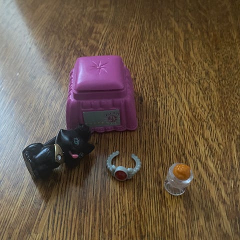 Kennerin valmistama Littlest pet shop ”Silky Yorkie pup with styling salon” -setti 1990-luvulta. Täydellisestä kokonaisuudesta puuttuu jokunen osa. ☺️ Tallellaolevat osat ovat mielestäni hyväkuntoisia. Koirassa on inan verran maalikulumaa.