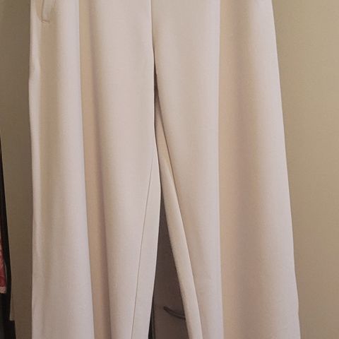 Suorat leveälahkeiset naisten housut koko L/XL. Merkki Marta du Chateau. Kankaan pinnassa hieman blingbligä. Lahkeen sisämitta 72 cm vyötärön ympärys venytettynä 110 cm. Ihan uudet housut ei ole kertaakaan käytetty.