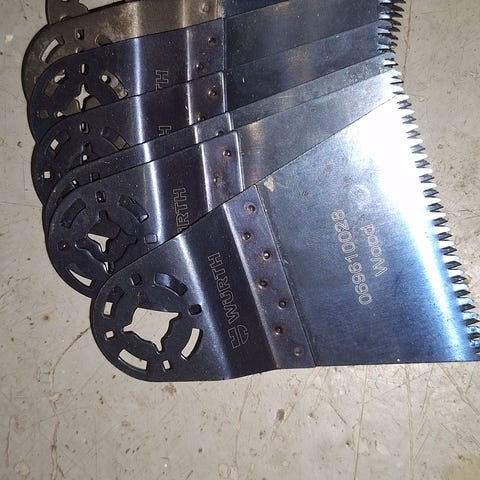 Monitoimikoneen puu teriä ois kiinnityksellä. Teriä 13kpl hinta 9€/kpl tai kaikki 100€.