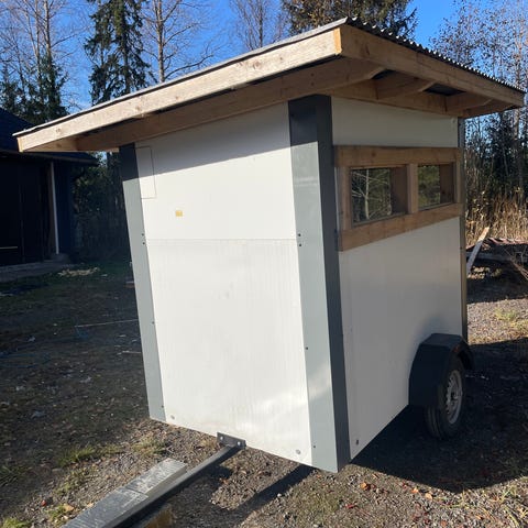 Joutilaana kytis hommiin, kahdelle suunalle ampuma luukut, huopakatto, uretaani sisällä, ilmanvaihto reiät, myös kuvassa oleva kärri kuuluu kauppaan