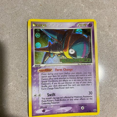 Deoxys x 2 Pokemon Holon Phantoms sarjasta (2006). Yksi on holo ja toinen reverse holo.