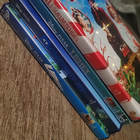 Kokoelma lasten DVD-elokuvia, erilaisia genrejä ja tarinoita. Sopii lapsille viihdyttäväksi materiaaliksi.