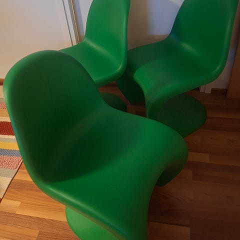 Kolme punaista Panton tuolia. Kaikki kolme 400 euroa. 150 euroa kappale.