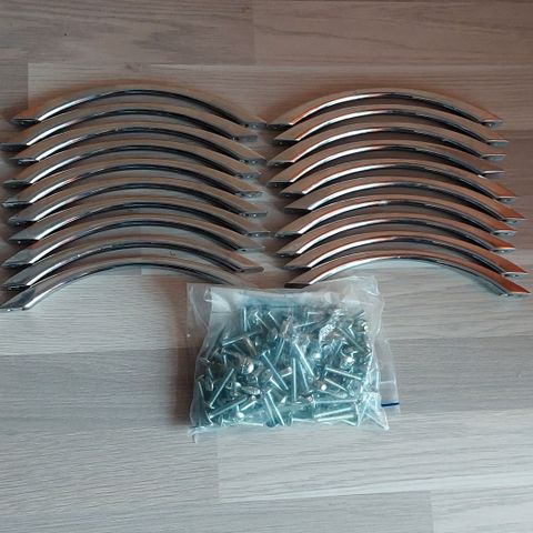 Tyylikkäät ovien vetimet, 16 kpl. Jonkun verran kuluneet mutta vieläkin hyvin näköiset.