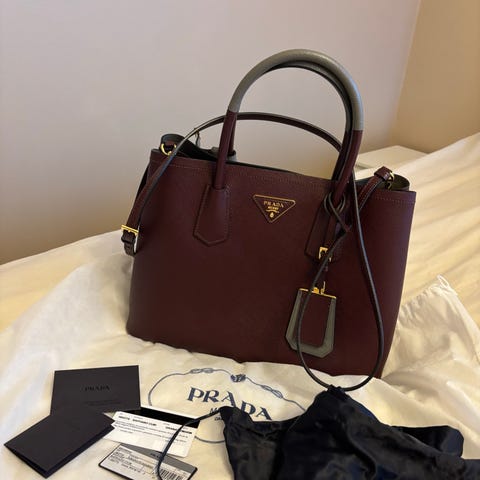 Prada nahkainen naisten käsilaukku valkoisessa värissä. Laukussa on olkahihna ja magneettinen suljin. Sisätilat sisältävät pienen taskun. Sopii arkeen ja juhlaan.