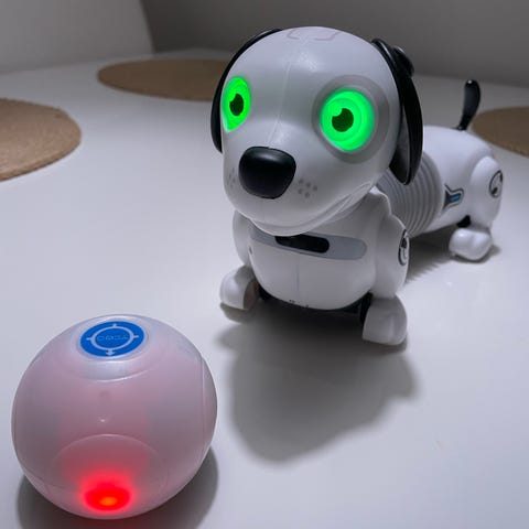 Tarpeettomaksi jäänyt robokoira. Robokoira toimii pattereilla ja on hyvässä kunnossa.