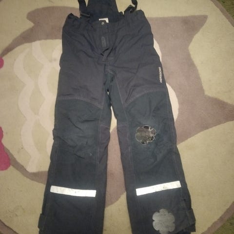 Didriksons puolihaalarimalliset toppahousut, koko 130cm. Hyvä käytetty kunto. Polvissa pehmentymää.