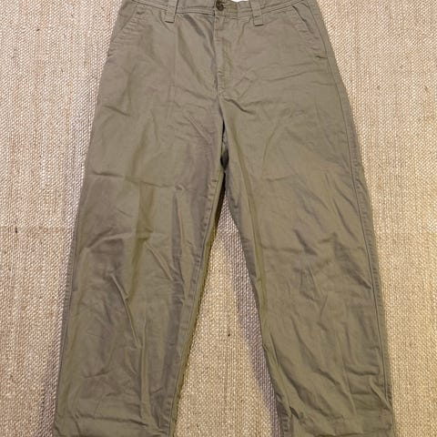 Myyntiin siistikuntoiset ja ehjät, vain muutaman kerran käytetyt Uniqlo-merkkiset chinot klassisen tummanruskeassa värissä ja koossa W36 (vastaa noin XL-kokoa). Kangas on tukevan ja kestävän oloista 100% puuvillaa. Myynnissä myös beiget housut samassa mallissa ja koossa.