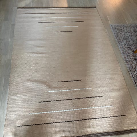 N. 3vuotta käytössä ollut puuvillamatto,koko 210x144cm. (Ilman hapsuja. Kevyt kantaa. Pesty juuri mäntysuopavedellä. Koiratalous. Vain nouto Espoon Nöykkiöstä.