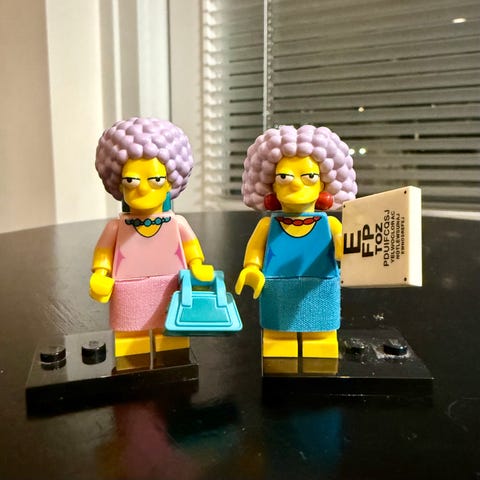 Halutaan ostaa lapselle Lego Simpsons -minifiguureja. Etsinnässä olisivat Homer, Marge, Bart ja Lisa.