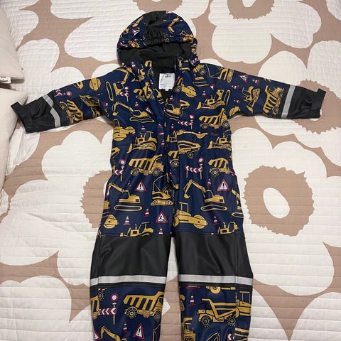 Heijastimet kärsineet. Pieniä kulumia muutenkin. Hihassa ainut varsinainen reikä, neulanpiston kokoinen. Pieni korjaus tehty liimalla toisen lahkeen sisäsaumaan, samoin eteen haaruksiin. Toistaiseksi kuivana haalari pitänyt. Ei ole kuitenkaan lätäkössä istuttu tai kontattu. Toridiili tai nouto Ilmajoelta.