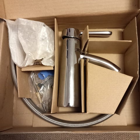 Täydellinen asennus valmis hana kylppäriin. Tätä ruostumatonta teräs mallia ei enää saa. Joustavat vesiletkut pituus 50cm.