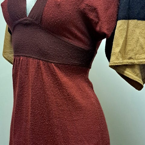 Tummansininen neulemekko, merkki C.M.P55. Koko S/M. Niska-helma -mitta 80 cm.