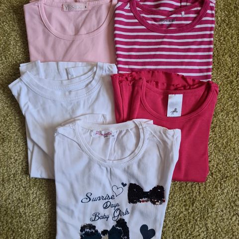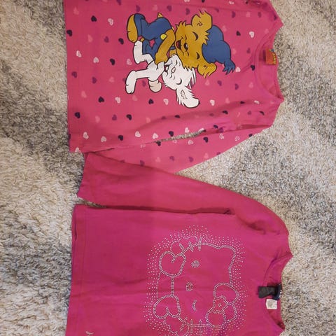 Lindex lasten t-paidat, koko 104 cm, väriltään vihreät. Sopii tytöille. Toisessa t-paidassa on kuvituksena pupu, jossa on kiiltäviä paljetteja, vaihtaa hieman väriä valkoinen/vaalean punainen. Toinen Bamsen tunika. Kummatkin oikein hyvä kuntoisia. Hinta 3€/kpl.