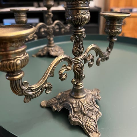 Myydään 3 kpl metallisia, kauniisti kuvioituja kynttilänjalkoja.