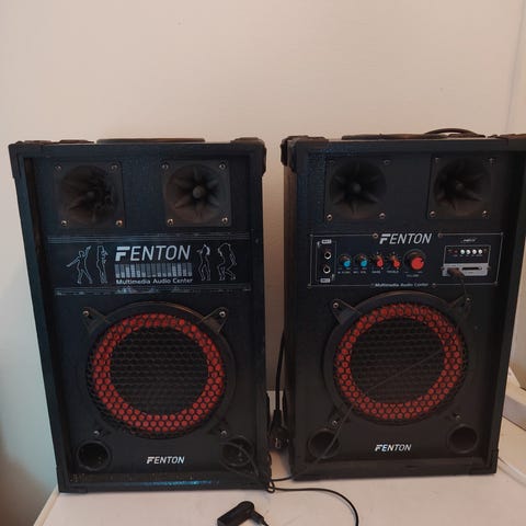 Philips 22 RH 781 ja Panasonic kaiuttimet. Kaiutin johtoihin täytyy hankkia DIN liittimet.