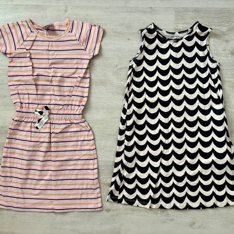 Vaaleansiniraitainen mekko/yöasu. Kaksi taskua.