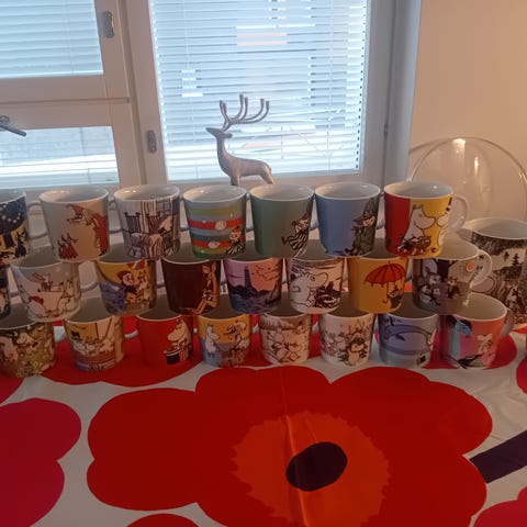Muutama muumimuki myyntiin. Kaikki hyvässä kunnossa, tarroja ei ole. Muumitaloa, Taikuria & Pikku Myytä lukuunottamatta kaikissa kruunuleima. Lisätietoja & kuvia viestillä.