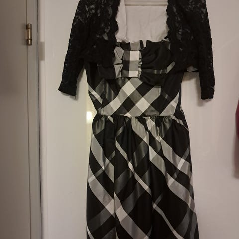 Kaunis setti esim.joulun juhliin. Mekon koko 110, bolero 122/128. Meillä ollut käytössä samaan aikaan.