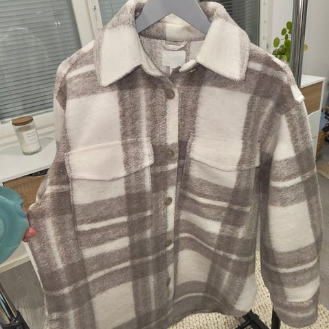Naisten lyhyempää mallia paitatakki koko M. kiinnitys neppareilla. Kaksi taskua edessä. Paksua luonnonvalkoista/ ihan vaaleanbeigeen taittavaa teddykangasta. Uusi ja käyttämätön.