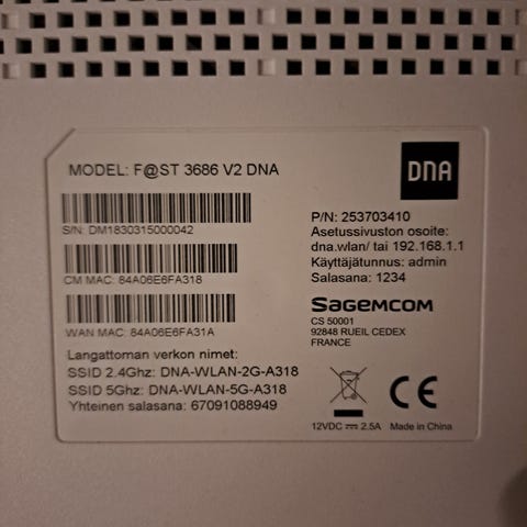 Toimivana irroitettu Dna reititin Sagemocom. Kahvipaketin hinnalla