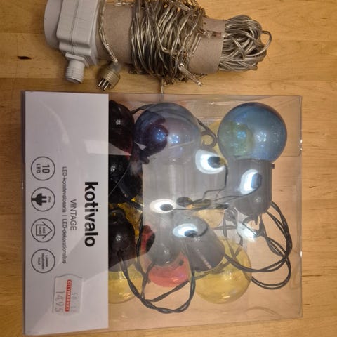 Star Neon tähti. Valosarja on pakattu laatikkoon, jossa on kuvaukset ja tekniset tiedot useilla kielillä. Valosarjan ominaisuuksiin kuuluu verkkojohdolla toimiminen. Tähti kiinnitetään imukupilla ikkunaan.
