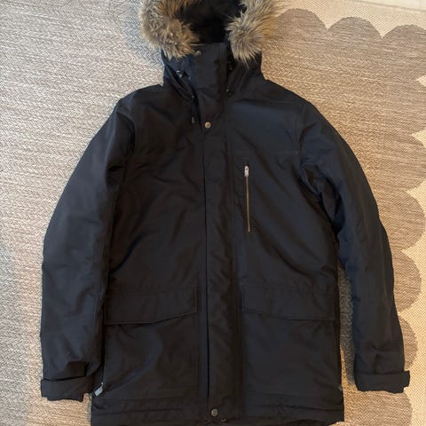 Peak Performance talvitakki mustassa värissä, koko L. Suunniteltu miehille. Takissa on hupullinen malli ja se soveltuu kylmiin sääolosuhteisiin. Ainoa vika vetoketjussa yläpäässä, kuva mutta toimii.