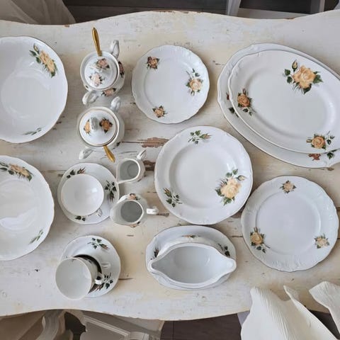 Voidaan pestä tiskikoneessa. Parissa astiassa on pienet palat lohjennut käytössä (kuva 3). Muuten hyvässä kunnossa eikä naarmuja.