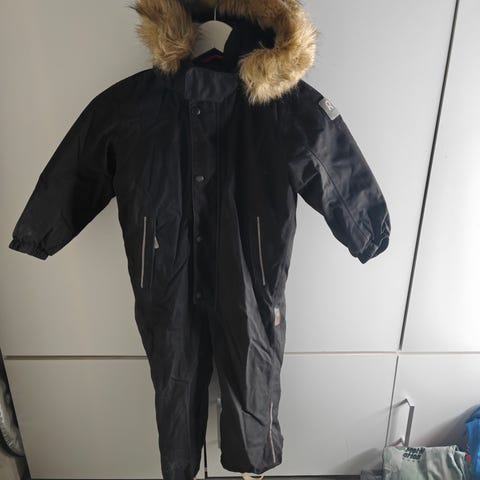 Reiman tummansininen Stavanger toppapuku, koko 98. Polveen tullut käytössä värjäymää, en ole koittanut erikseen konepesun jälkeen poistaa. Peppu ja polvet ehjät, samoin jalkalenksut.