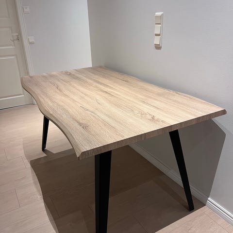 Myydään pari kuukautta käytössä ollut ruokapöytä eteenpäin, tämä olikin hieman liian iso meille. Pöytä on hyvässä kunnossa.