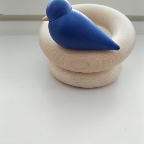 Aarikan pieni sininen lintu orrella koriste-esine.