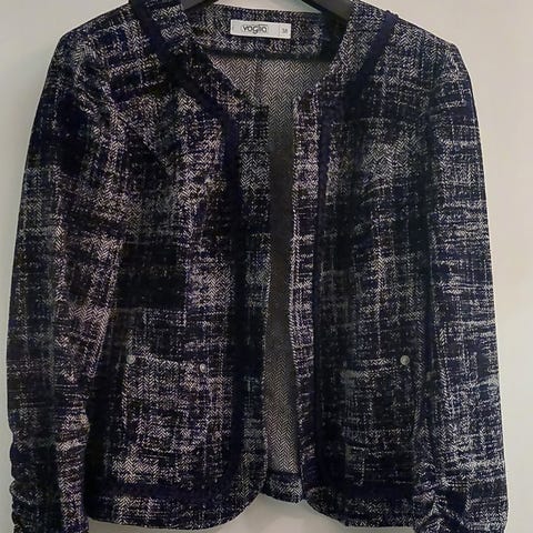 Uudenveroinen Voglian jakku. Koko 38. Kainalo-kainalo 45cm, hartia-helma 54cm.