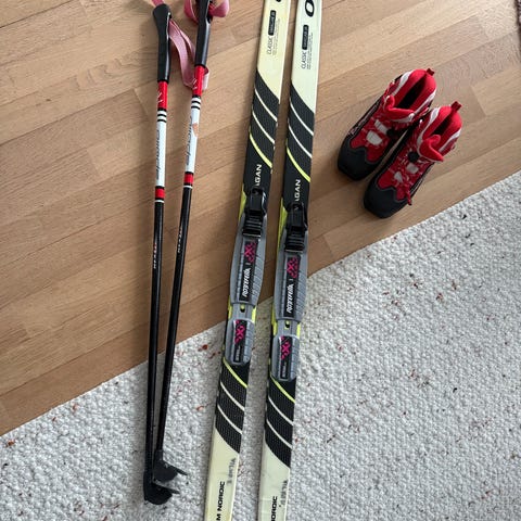 Ok kunnossa olevat sukset 110 cm ja siteisiin sopivat monot koko n.30 (pienehkö koko 31)
