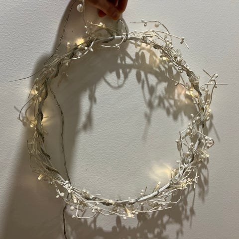 Myydään erittäin kauniit Konstsmiden valokranssit (2 kpl). Kranssien halkaisija noin 49cm. Kranssien kehys vaaleaa oksaa ja ripustusnauha punavalkoista ruutukuviota. Vain sisäkäyttöön.