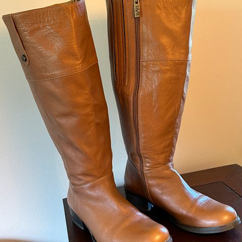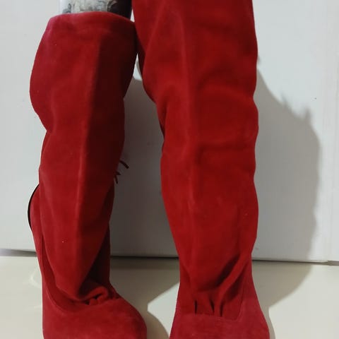 Ruskeat mokkasaapikkaat, voi käyttää ylipolven menevinä tai kääntää reuna edestä alas. Ei käytetty muuten kuin sovittaessa. Koko 39, vastaa hyvin kokoaan. Korko n 8,5 cm ja kokonaiskorkeus n 49,5 cm. Lähetyskulut toimitustavan mukaan.