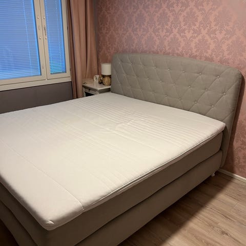 Asko Bonnell Kuura -jenkkisänky ja settiin kuuluva harmaa sängynpääty. Ilman petauspatjaa. Sänky ja pääty oikein hyvässä kunnossa. Ostettu 2021, ovh. sijauspatjan kanssa 1647€.