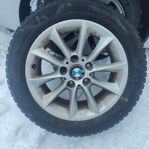 Ylimääränen sarja bemarin peltivanteita nastoilla, renkaat vanhat, mutta pintaa ja nastoja hyvin.
